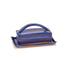 This handmade Iris glazed butter dish features a large, easy-to-grip handle that ensures a secure hold and prevents slipping. Designed to fit a standard American stick of butter, it includes a rectangular plate and a convenient handled cover. The cover allows you to keep butter fresh whether left on the counter or stored in the fridge, making it a practical and charming addition to any kitchen.