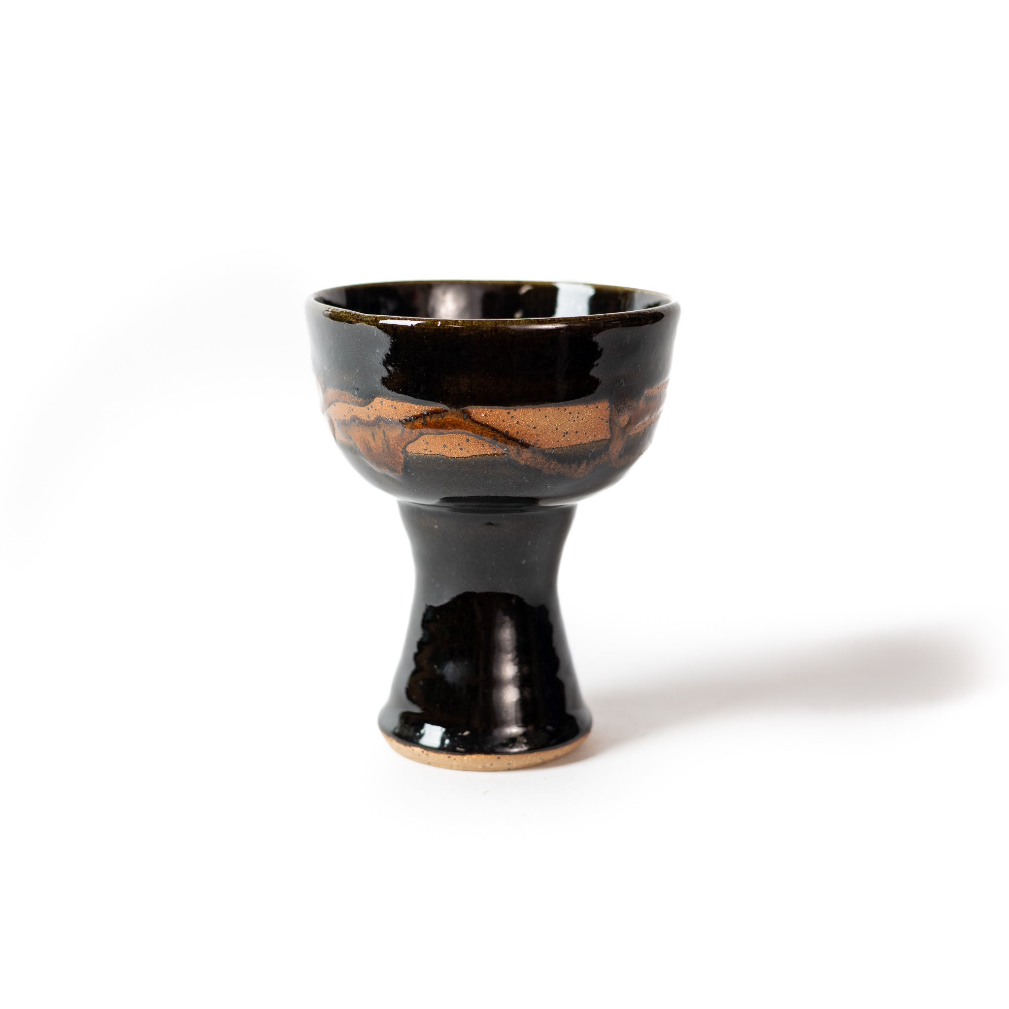 This Black Mountain glazed wheel-thrown pottery chalice is designed specifically for communion and Eucharist ceremonies. Crafted with care, it honors the sacred traditions of the Christian faith while offering a beautiful and meaningful vessel for your most holy rituals. Its handmade quality adds a special touch to every ceremony.