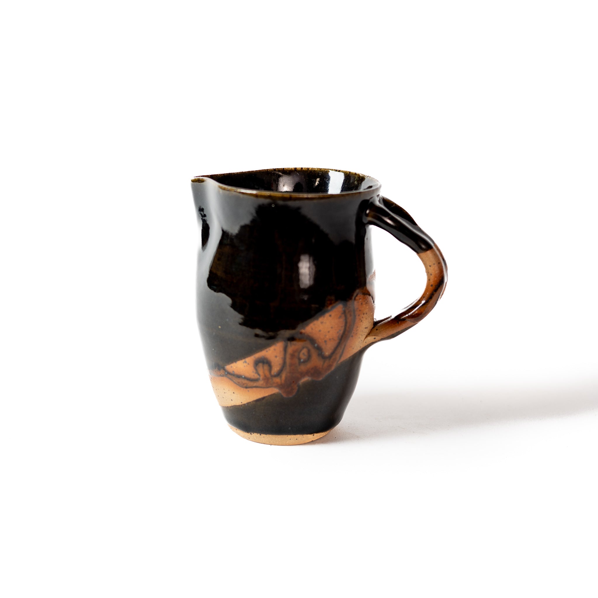 This small Black Mountain glazed wheel-thrown ceramic creamer features a comfortable, easy-to-hold handle, making it perfect for serving cream with your coffee or tea, or syrup for breakfast waffles. It’s dishwasher safe and microwave friendly for convenient use and cleaning.
