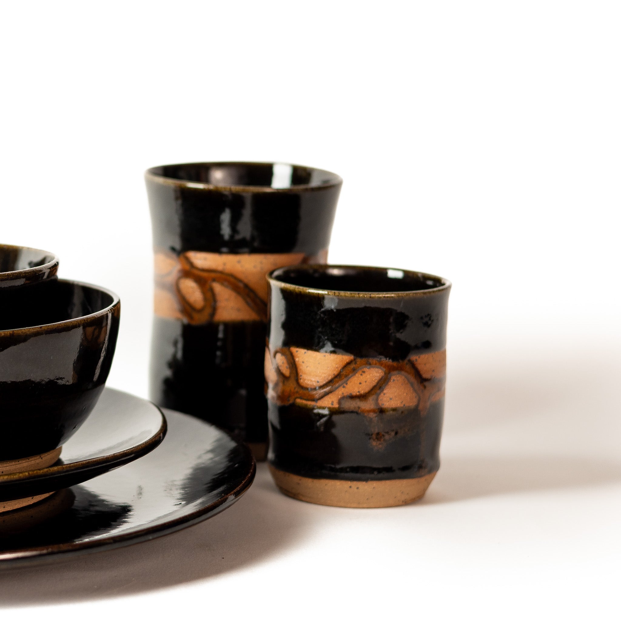 Black Mountain is one of our four Signature Glazes. It contains deep chocolate and rich black glossy tones, with an original design of copper and black textured glaze dancing over speckled stoneware.