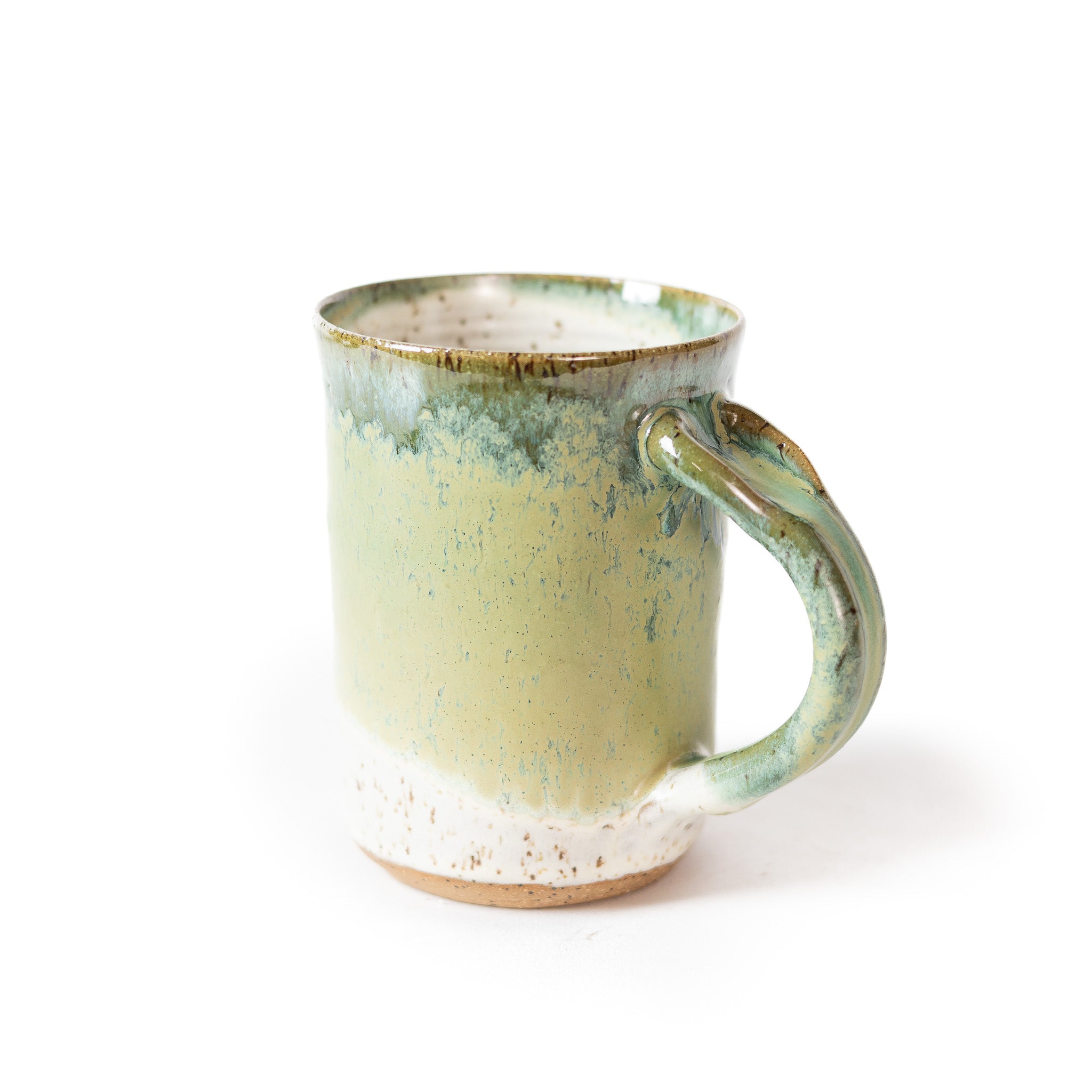 Our famous Lillian glazed mug offers a beautiful hand-thrown drinking vessel with straight walls, an incredibly thin rim, and a super comfortable handle with a thumb impression that feels like a natural extension of your hand. Drinking anything from a handmade mug makes it taste that much better. Enjoy a little sunshine in your cup every day.
