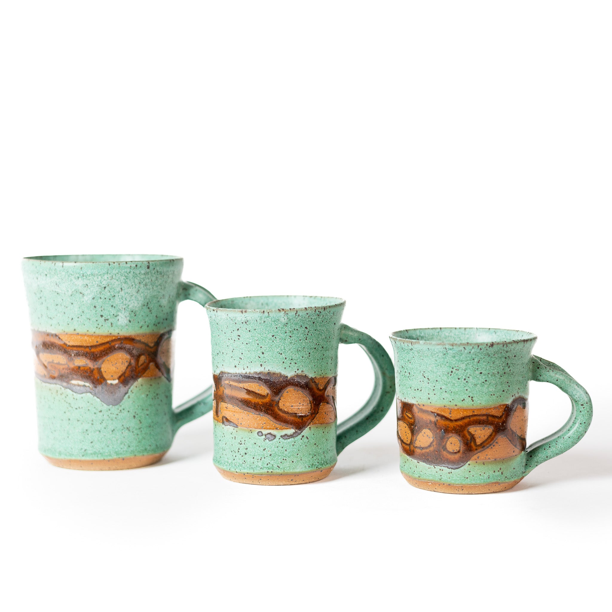 Our famous Spruce Knob glazed mug offers a beautiful hand-thrown drinking vessel with straight walls, an incredibly thin rim, and a super comfortable handle with a thumb impression that feels like a natural extension of your hand. Drinking anything from a handmade mug makes it taste that much better. Enjoy a little sunshine in your cup every day.