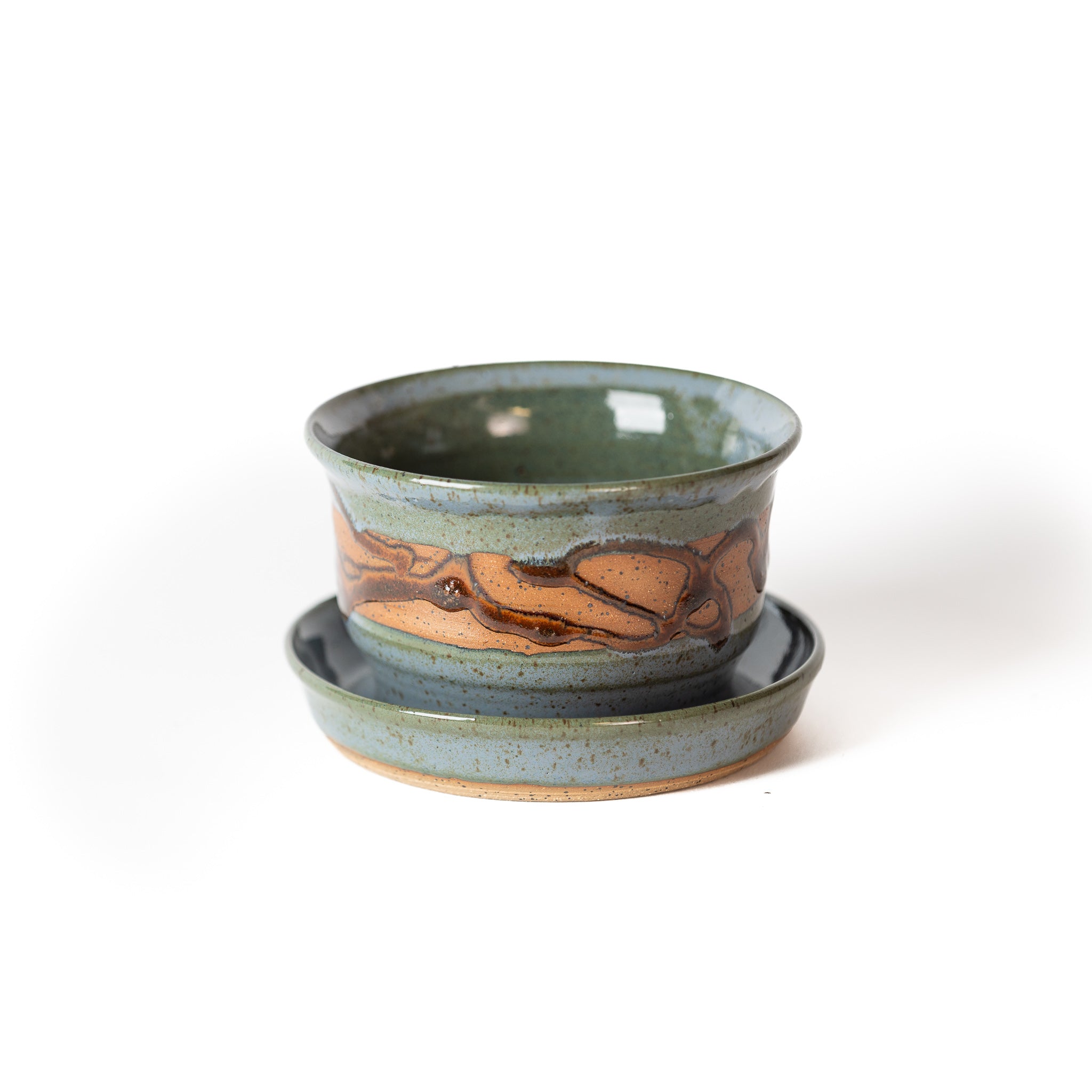 This handmade Greybeard glazed pottery planter combines functionality and timeless beauty. Featuring built-in drain holes and a built-in plate to catch excess water, it keeps your plants healthy and your surfaces protected. Designed to last for generations, it brings a charming touch to your home while highlighting the natural beauty of your plants.
