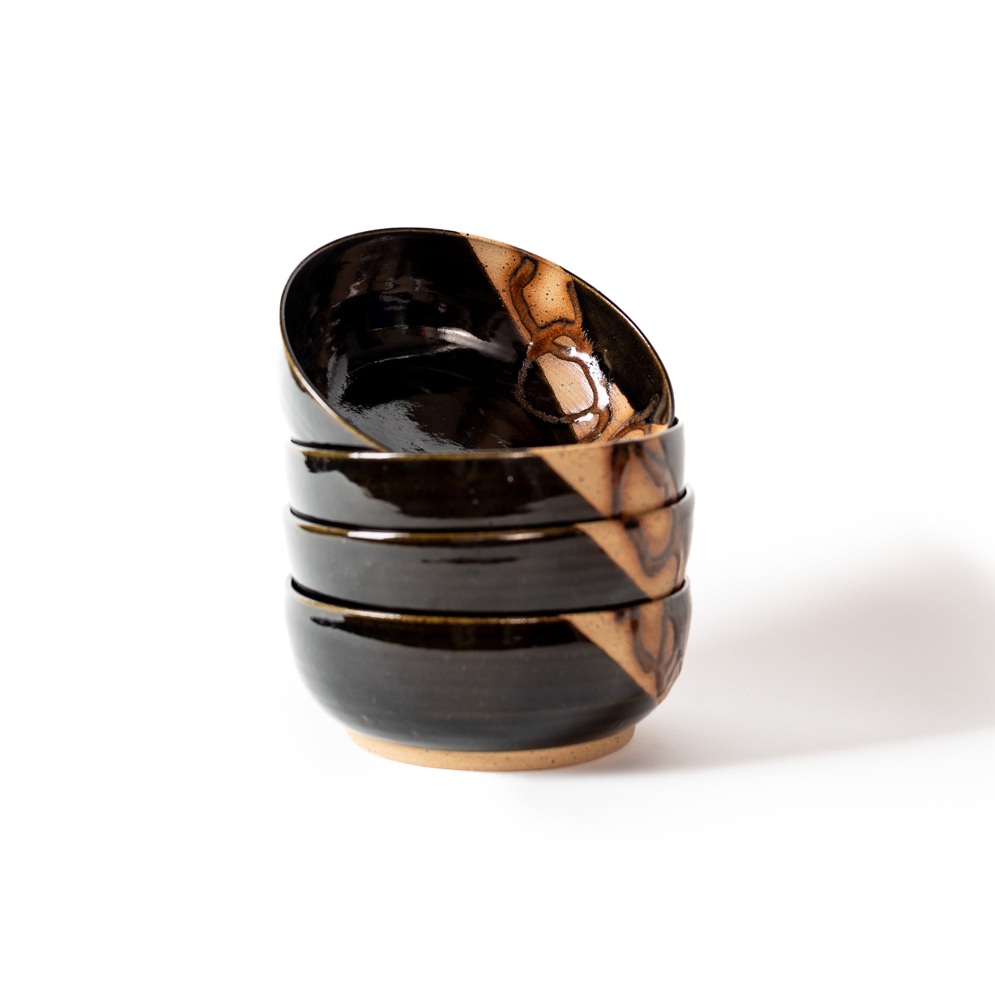 Glaze Color: Black Mountain is one of our four Signature Glazes. It contains deep chocolate and rich black glossy tones, with an original design of copper and black textured glaze dancing over speckled stoneware.