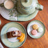 Finished in our original Lillian Glaze, one of nine original glazes produced by Sarah Sunshine Pottery. Lillian glaze contains tones of light green with hints of grey, blue, and yellow and satin cream on speckled stoneware.