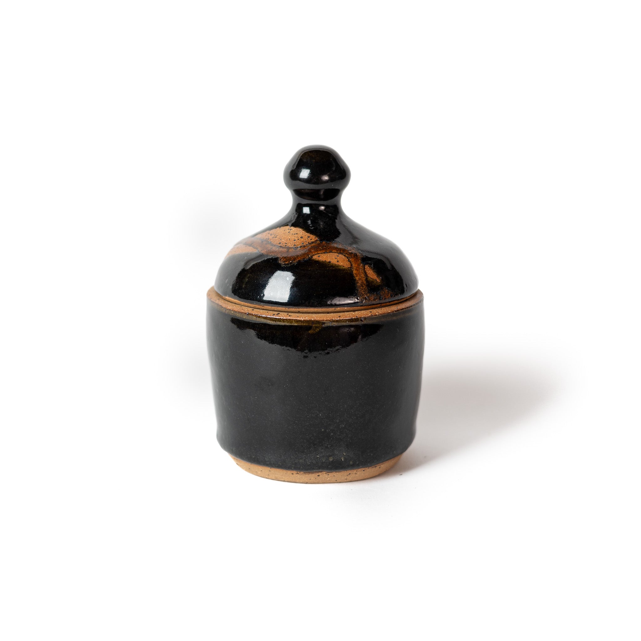 This charming Black Mountain glazed sugar holder adds warmth and depth to any kitchen setting. Its lidded design keeps sugar fresh and protected, but it's versatile enough to hold anything you like. Durable and heirloom-quality, it’s a delightful addition to your home, combining practical use with timeless style.