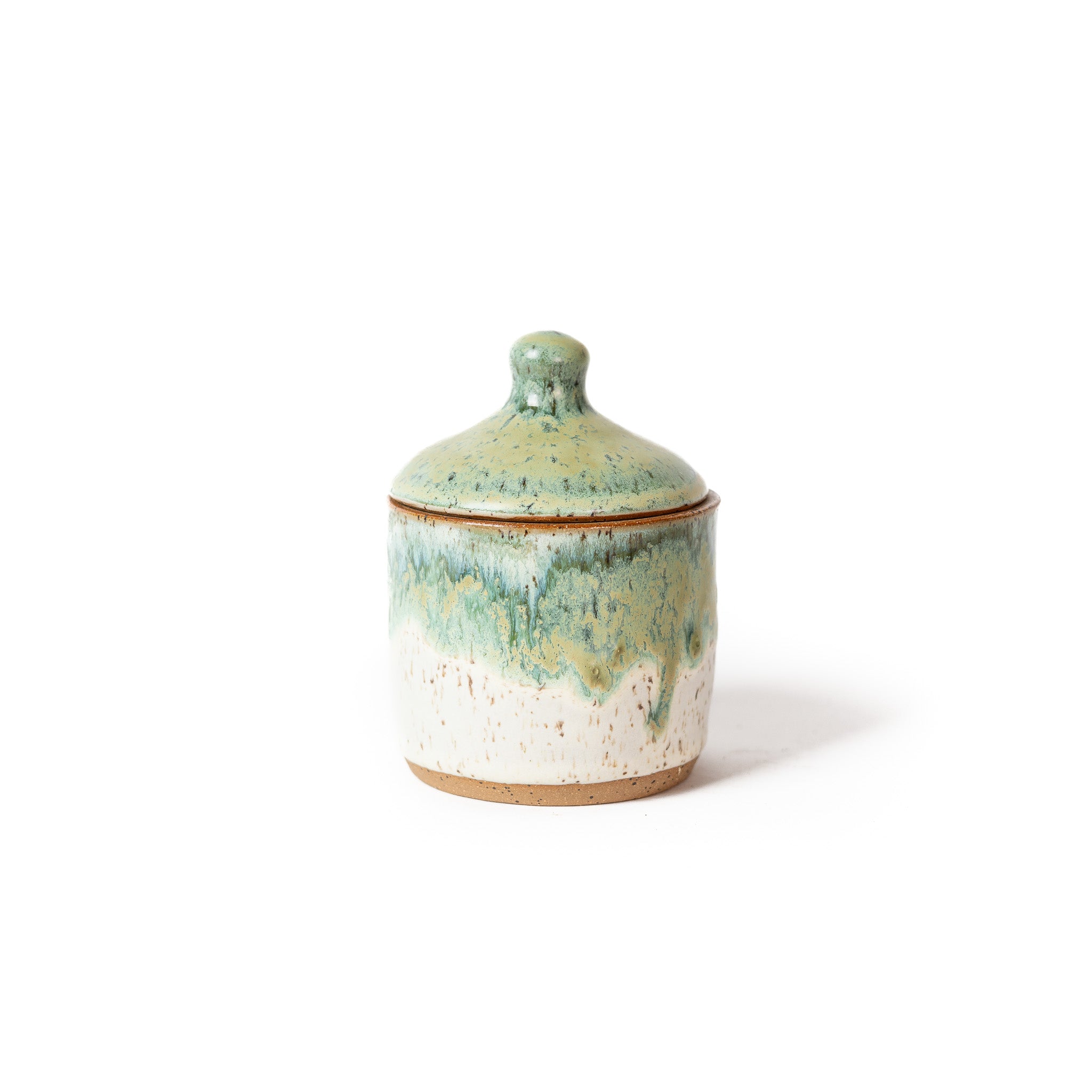 This charming Lillian glazed sugar holder adds warmth and depth to any kitchen setting. Its lidded design keeps sugar fresh and protected, but it's versatile enough to hold anything you like. Durable and heirloom-quality, it’s a delightful addition to your home, combining practical use with timeless style.